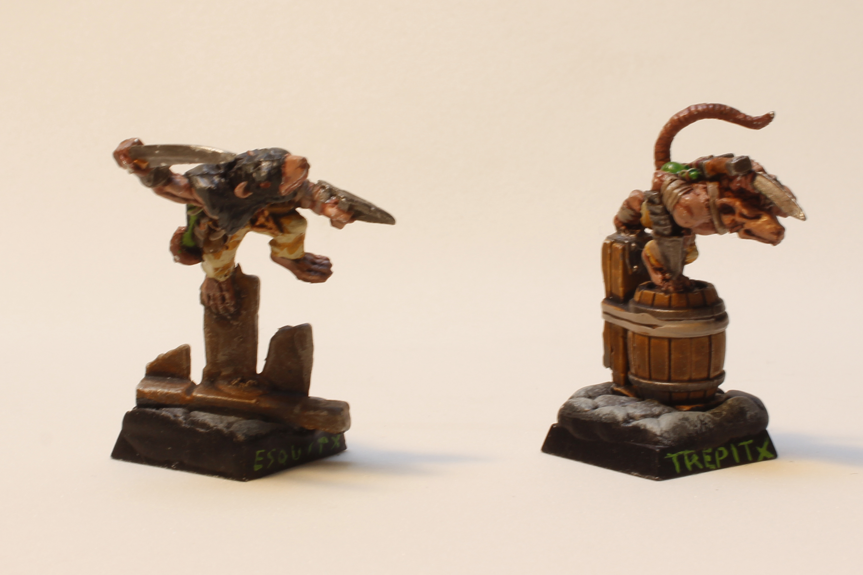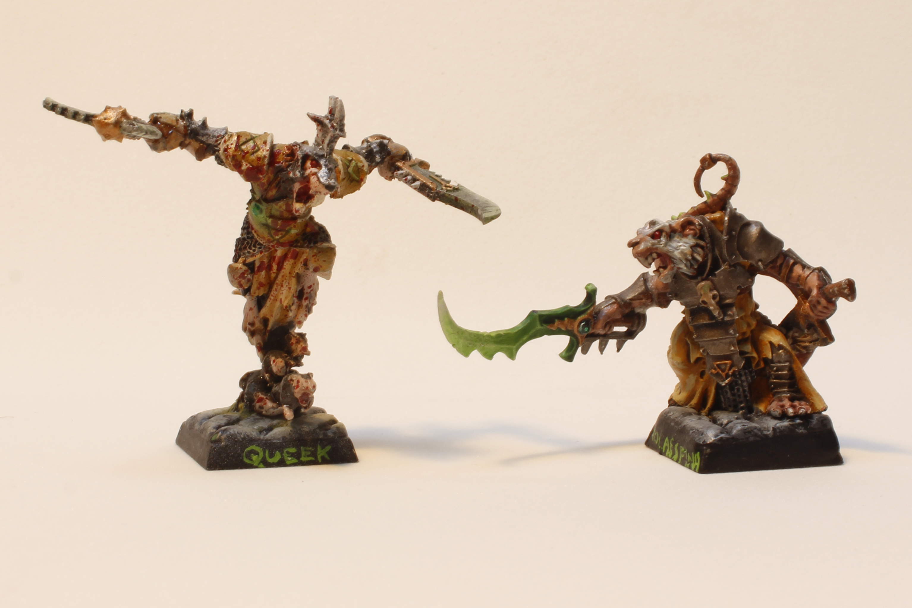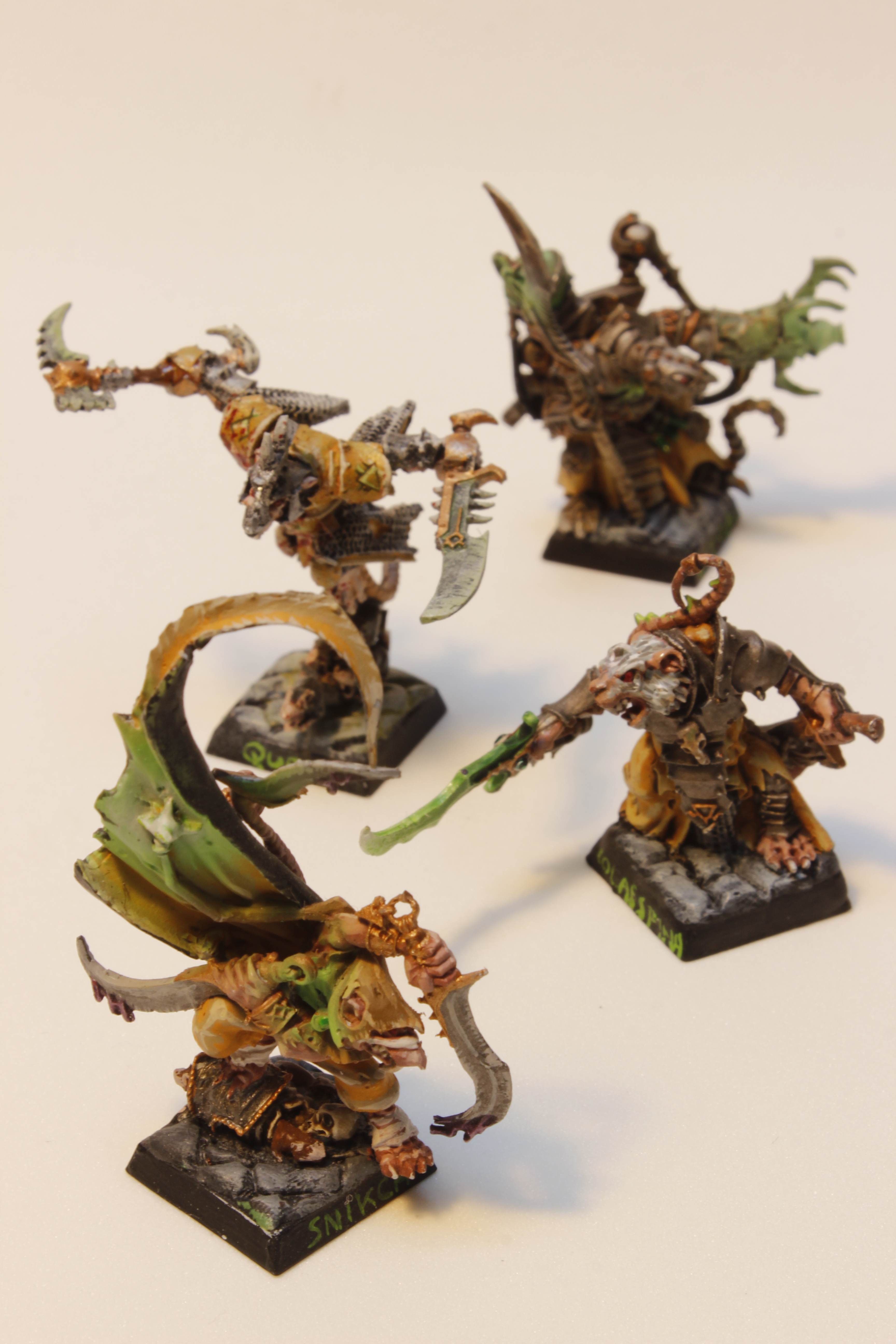 Ésta es la primera banda que se hizo Beorn_14, utilizando para ella la mayoría de personajes especiales de skavens que tenemos en catálogo, puesto que son una verdadera pasada. Para la tropa, cortó las alabardas de los guerreros para que pareciesen porras.